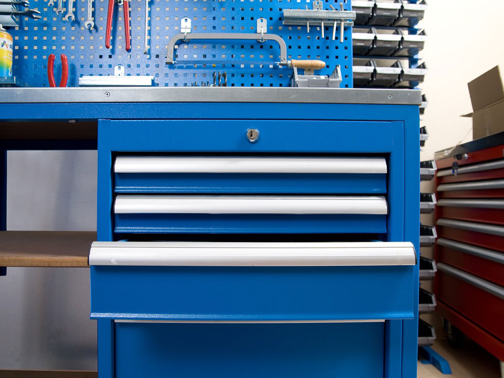 Ağır iş yüküne dayanıklı takım tezgahları, geniş çalışma yüzeyi, delikli pano sistemi ve modüler aksesuarlarıyla teknik personelin tüm ihtiyaçlarını tek noktada toplar. Ergonomik tasarım, üretim hızını ve verimliliği artırır.