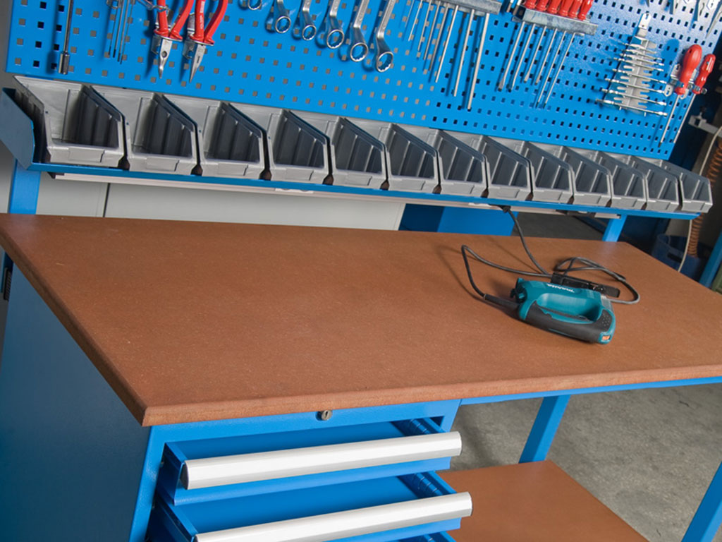Ağır iş yüküne dayanıklı takım tezgahları, geniş çalışma yüzeyi, delikli pano sistemi ve modüler aksesuarlarıyla teknik personelin tüm ihtiyaçlarını tek noktada toplar. Ergonomik tasarım, üretim hızını ve verimliliği artırır.